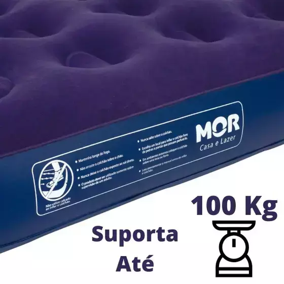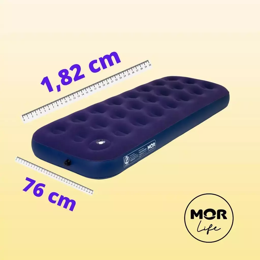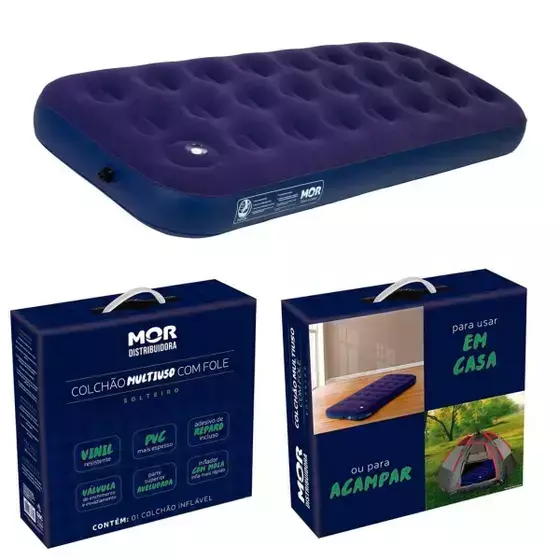 O Colchão Mor possui inflador acoplado com sistema de fole que facilita seu enchimento de maneira rápida e válvula de enchimento e esvaziamento com sistema de fechamento seguro que evita o vazamento de ar.