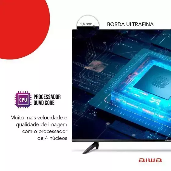 BORDA ULTRAFINA: A Smart TV Aiwa tem borda ultrafina de 1,4mm e proporciona, além de design sofisticado e elegante, uma imersão visual impressionante.