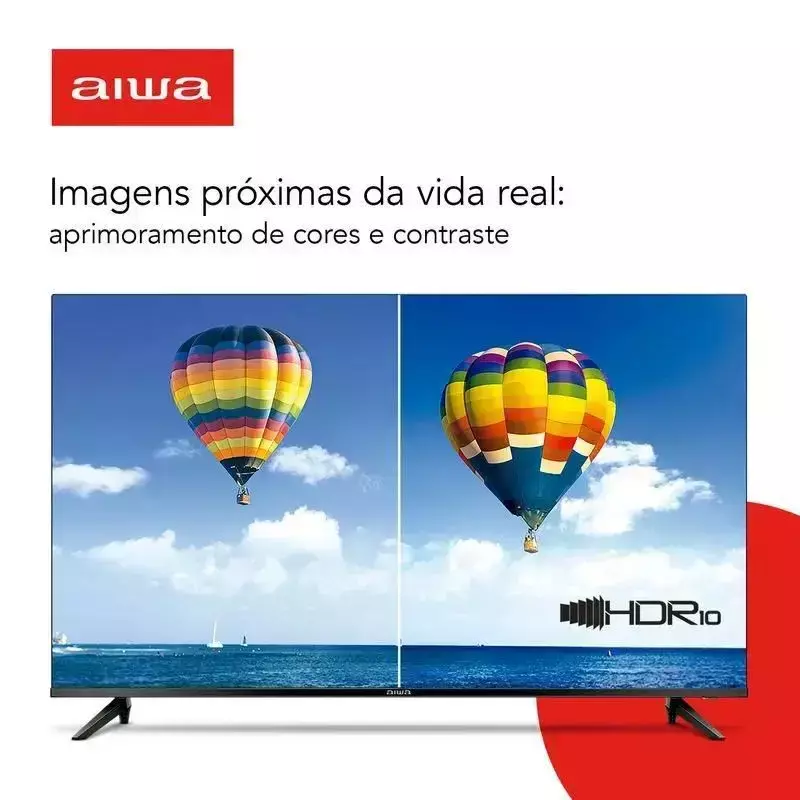 Smart TV AIWA de 32 polegadas com tela HD e HDR10, que proporcionam imagens em alta definição, com aprimoramento de cores, contraste e imagens mais próximas da vida real.